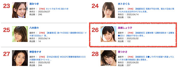只是话说回来,不知道有没有朋友注意到?高桥しょう子(高桥圣子)上个月的销售排名退得很厉害ー