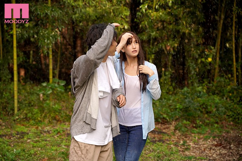 还好,明年3月,片商Moodyz没有进一步压迫高桥しょう子(高桥圣子),而是推出了清新小品「突然のゲリラ豪雨 グラドルと遭难小屋で朝まで二人きり…」:和上一支作品被老公的上司强上一样,这也是支剧情类的作品,但这次高桥没有一脸嫌恶地承受对方的撞击,而是和男星躲在山上的小木屋你侬我侬⋯