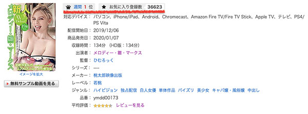 她有多猛呢?这位被称为「北欧が生んだ2,700万人に一人の美少女(北欧出生、2700万人才有一个的美少女)」不只在FANZA当週的下载排行榜拿下第一而且还获得了超过3.6万个赞,影迷纷纷说她是「2019年最后的杰作」、「必须要和不看洋妞的人好好推荐」、甚至还有人说这位北欧的妖精是「令和元年最强女星」⋯