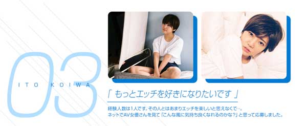 好吧,那不重要,重点是小岩いと(小岩伊都)何德何能、可以成为KMHR改版后的开山祖师爷?根据片商提供的资料,这位短发俏丽的大学生之前只和一个男生上过床,经验非常少,有可能是因为她外型看来非常帅气,让男生觉得她是哥们而不是妹子,但实际上这位新人的内心非常女生,而且喜欢料理、每天都在跳绳的她其实蛮喜欢爱爱的…