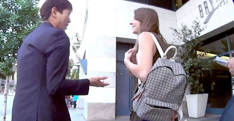 这部由知名片商「桃太郎」所发行,在当年号称「史上最强速人搭讪企划」的片名叫做「GET!! 素人ナンパ No.166 2014 inロサンゼルス」。光看片名也知道内容就是素人搭讪,只是不一样的是…这是跨海的特别企划!场景从一般常见的日本街头变成了美国洛杉矶,女主角也从日本妹变成金发碧眼的外国妞。