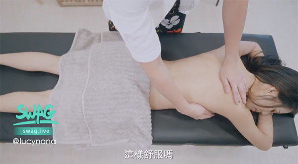 演出的女星名唤芊芊(SWAG帐号@lucynana),身材纤细曼妙、胸前伟大坚挺、作风豪爽直接,之前介绍作品时就知道她是那种你敢来我就敢爽的新时代伟大女星。这次进到按摩店也一样,在知道师傅眼睛看不到后她不但直接在对方面前脱光光换衣服还要加强腰部治疗:「因为我老在男人上面摇,腰都痠了!」