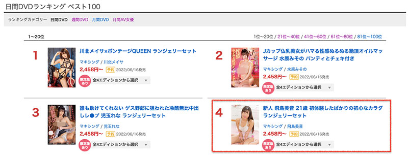 试看影片呢?抱歉,Maxing没给,虽然说高风险有可能拿到高报酬而且这支作品昨天在FANZA的排行榜高居第四,不过看完飞鸟美音在twitter上的影片我还是觉得算了,老人家心脏不好,为了避免承受不了,飞鸟美音的出道作我还是晚点再看吧~