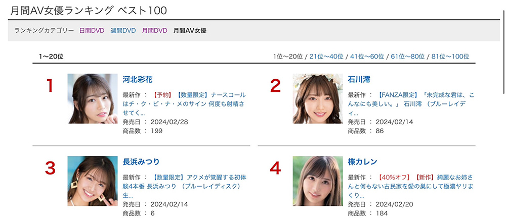 非也非也,看到新ありな(新有菜)大乱搞解禁你会觉得她不妙吗?如果你觉得不用担心那位第一美腿的话那楪カレン(楪可怜)也是一样的ー如果你觉得我太主观不能相信的话直接看她的销售成绩就好:身为Premium和OPPAI两家片商专属女星,就算有些暗黑er嫌她又小又黑还很人工,但楪カレン(楪可怜)一直是这一行买气最旺的专属女星,有多旺呢?除了河北彩花和石川澪,其他片商的专属女星在FANZA每个月的销售排行榜上没人有把握一定赢她的〜