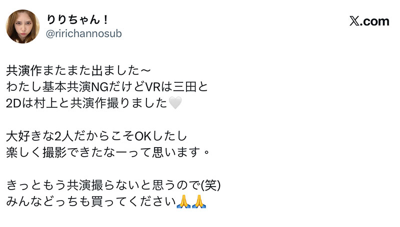 看完这支作品的介绍不知道您做何感想?是好想报队参加演出,又或者在思考为什么是这两位女星的组合?就我的看法,刚结束发片干旱期的村上悠华真不错,没多久就获得了如此吸睛的企划;至于对七ツ森りり(七森莉莉)而言呢?她是有在X的小号说了,这应该会是她最后一次的共演⋯